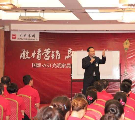 北京國富縱橫管理咨詢有限公司總裁趙龍博士針對光明家具品牌定位和未來品牌發展方向講解了《光明家具品牌運營情境營銷》的課程,受到了光明集團高層和所有學員的高度認可,光明家具的品牌成長和未來發展方向讓所有光明人看到了光明的明天。董曉明老師的打造卓越團隊的課程讓學員們充分了解了自我;了解了團隊,了解了光明,讓光明人緊緊的抱在一起迎接家具行業新的光明家具!曹輝老師的《家具賣場成交20大法則》讓光明家具的家人們學習到了終端實戰銷售技巧,讓學員們回到店面中就可以直接應用,受到了學員們的高度好評。王曉文老師的《如何成為家具金牌店長》讓光明家具的經理和店長學習到了如何成為金牌店長;如何管理店面;如何面對競爭對手的打擊等等實戰技巧,真正的讓學員們掌握到了家具終端實戰技巧。