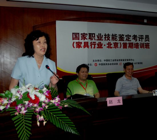 在開班典禮上,中國國家人力資源和社會保障部劉新昌處長針對中國國家職業技能鑒定工作未來的趨勢和發展方向做了精彩的報告,輕工業聯合會孟琪主任針對如何開展家具行業技能鑒定工作做了實際意義的報告,兩位領導的精彩報告博得了在場所有學員的熱烈掌聲。中國家具協會劉金良副理事長針對此次培訓班做了簡短而精煉的發言,代表中國家具協會表示有信心把家具行業的職業資格認證教育發展的越來越好。北京國富縱橫管理咨詢有限公司國際•AST商學院作為中國家具協會的培訓部,中國家具行業職業資格認證教育執行機構為此次培訓班提供精良的會務保障,總裁趙龍博士在開班典禮上風趣幽默的發言,表示北京國富縱橫管理咨詢有限公司一定會把家具行業的職業資格認證教育推向高潮,有信心出色地完成中國家具協會交給北京國富縱橫的任務。